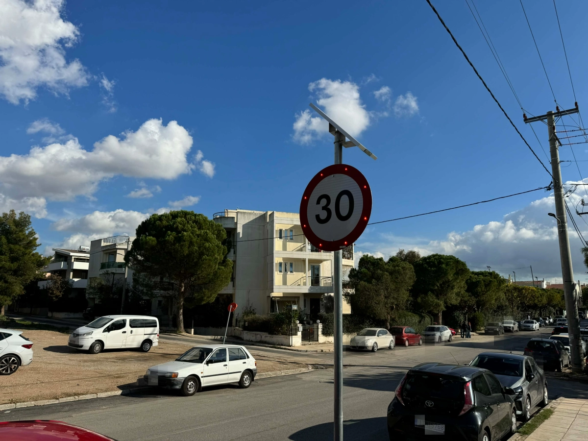 Οι συγκεκριμένες πινακίδες, οι οποίες λειτουργούν αποκλειστικά με ηλιακή ενέργεια, διαθέτουν παλλόμενα φώτα led καθιστώντας την ένδειξη του επιτρεπτού ορίου ταχύτητας των 30 χιλιομέτρων πιο εμφανή και άμεσα αντιληπτή από τους οδηγούς. Η χρήση τους συμβάλλει ουσιαστικά στη μείωση της ταχύτητας, καθώς οι φωτεινές ενδείξεις τραβούν περισσότερο την προσοχή και υπενθυμίζουν με σαφήνεια τους κανόνες οδικής κυκλοφορίας. Παράλληλα, η αξιοποίηση της ηλιακής ενέργειας μειώνει το ενεργειακό τους αποτύπωμα.