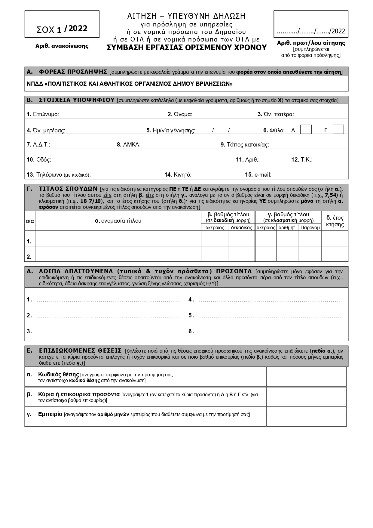 για τη σύναψη ΣΥΜΒΑΣΗΣ ΕΡΓΑΣΙΑΣ ΟΡΙΣΜΕΝΟΥ ΧΡΟΝΟΥ