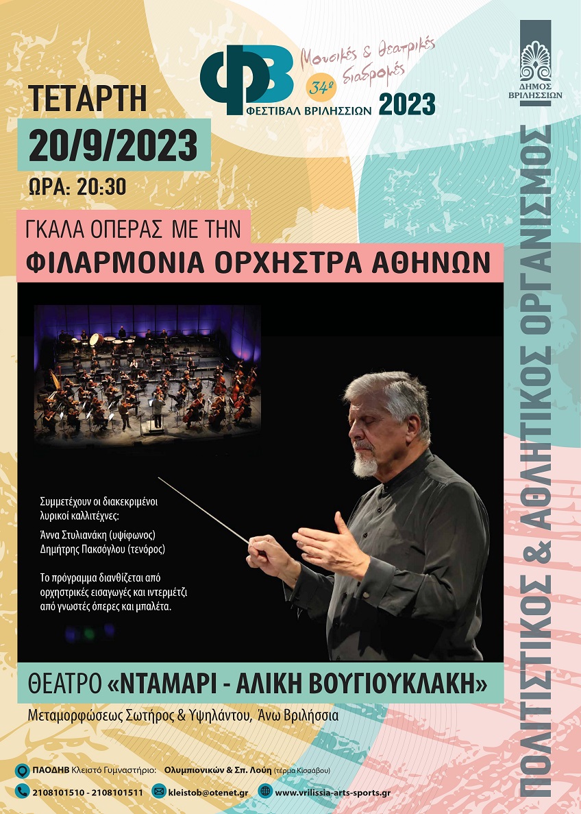 Η Φιλαρμόνια Ορχήστρα Αθηνών, σε συνεργασία με τον Πολιτιστικό & Αθλητικό Οργανισμό του Δήμου Βριλησσίων, θα παρουσιάσει ένα «Γκαλά» όπερας.