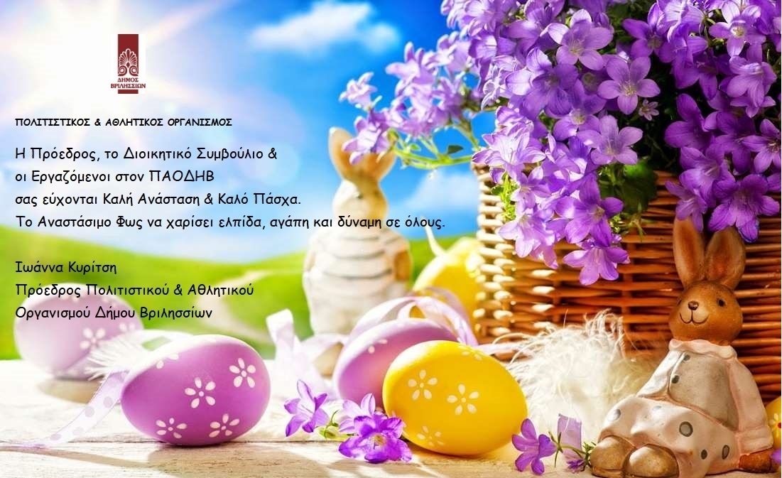 ΠΑΣΧΑΛΙΝΕΣ ΕΥΧΕΣ ΑΠΟ ΤΟΝ ΠΟΛΙΤΙΣΤΙΚΟ & ΑΘΛΗΤΙΚΟ ΟΡΓΑΝΙΣΜΟ Δ. ΒΡΙΛΗΣΣΙΩΝ