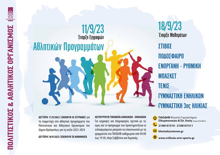 ΕΚΔΗΛΩΣΗ ΤΜΗΜΑΤΩΝ ΡΥΘΜΙΚΗΣ & ΕΝΟΡΓΑΝΗΣ ΓΥΜΝΑΣΤΙΚΗΣ ΠΑΟΔΗΒ Σας προσκαλούμε την Κυριακή 28 Μαΐου 2023 και ώρα 19:00 στο Κλειστό Γυμναστήριο Βριλησσίων, να παρακολουθήσετε την τελική εκδήλωση των παιδιών των τμημάτων…