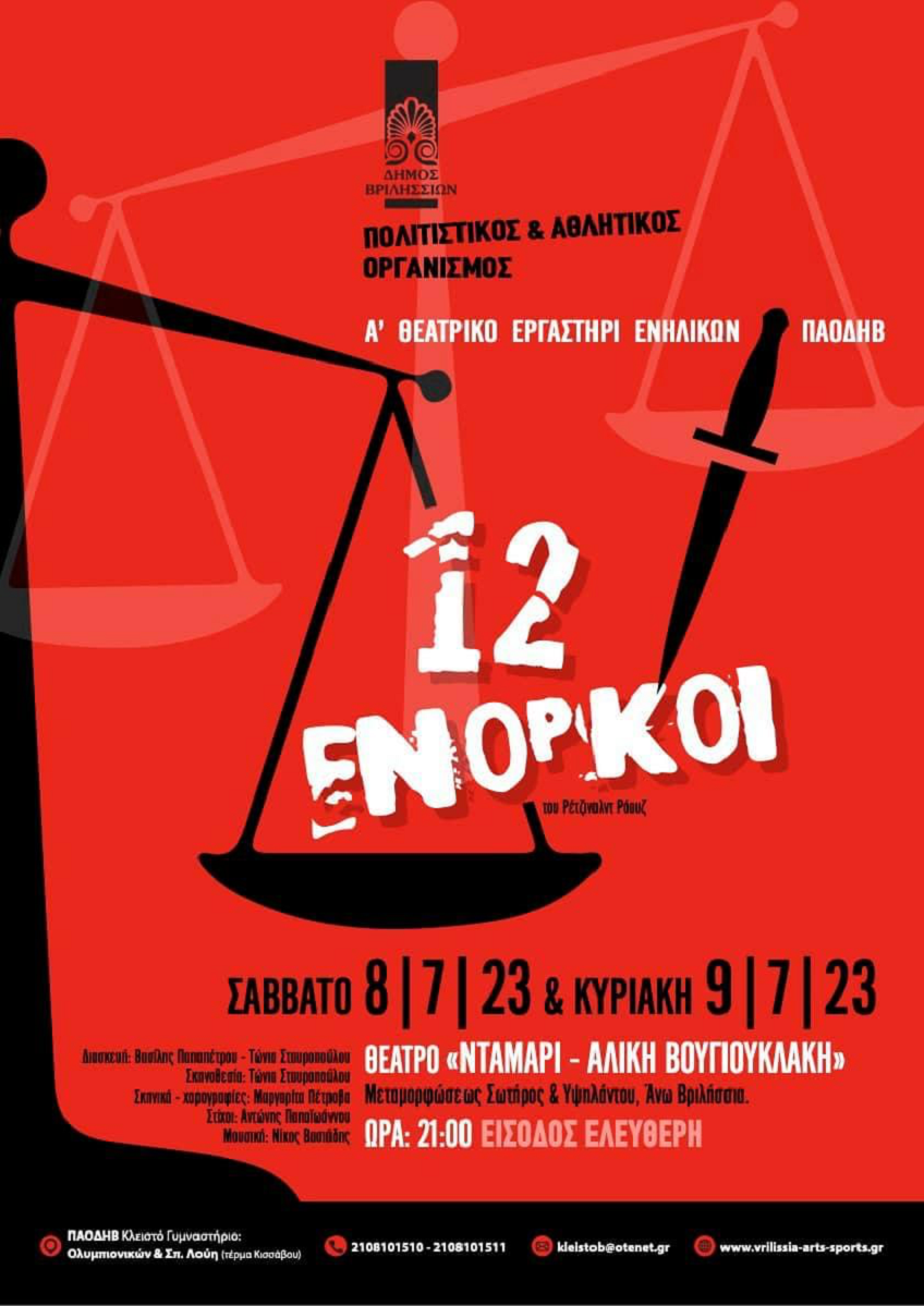 “12 ΕΝΟΡΚΟΙ” από το Α’ Θεατρικό Εργαστήρι Ενηλίκων του ΠΑΟΔΗΒΤο Α’ Θεατρικό Εργαστήρι Ενηλίκων του ΠΑΟΔΗΒ θα παρουσιάσει τη θεατρική παράσταση«12 ΕΝΟΡΚΟΙ», το Σάββατο 8 και την Κυριακή 9 Ιουλίου…