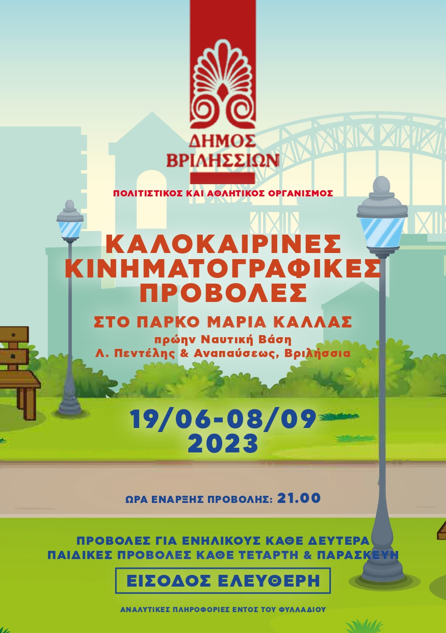 ΕΝΑΡΞΗ ΚΙΝΗΜΑΤΟΓΡΑΦΙΚΩΝ ΠΡΟΒΟΛΩΝ ΣΤΟ ΠΑΡΚΟ “ΜΑΡΙΑ ΚΑΛΛΑΣ” Ξεκινά τη Δευτέρα 19 Ιουλίου 2023 ο 1ος κύκλος των κινηματογραφικών προβολών στο Πάρκο ΜΑΡΙΑ ΚΑΛΛΑΣ (πρώην Ναυτική Βάση), Λεωφ. Πεντέλης &…