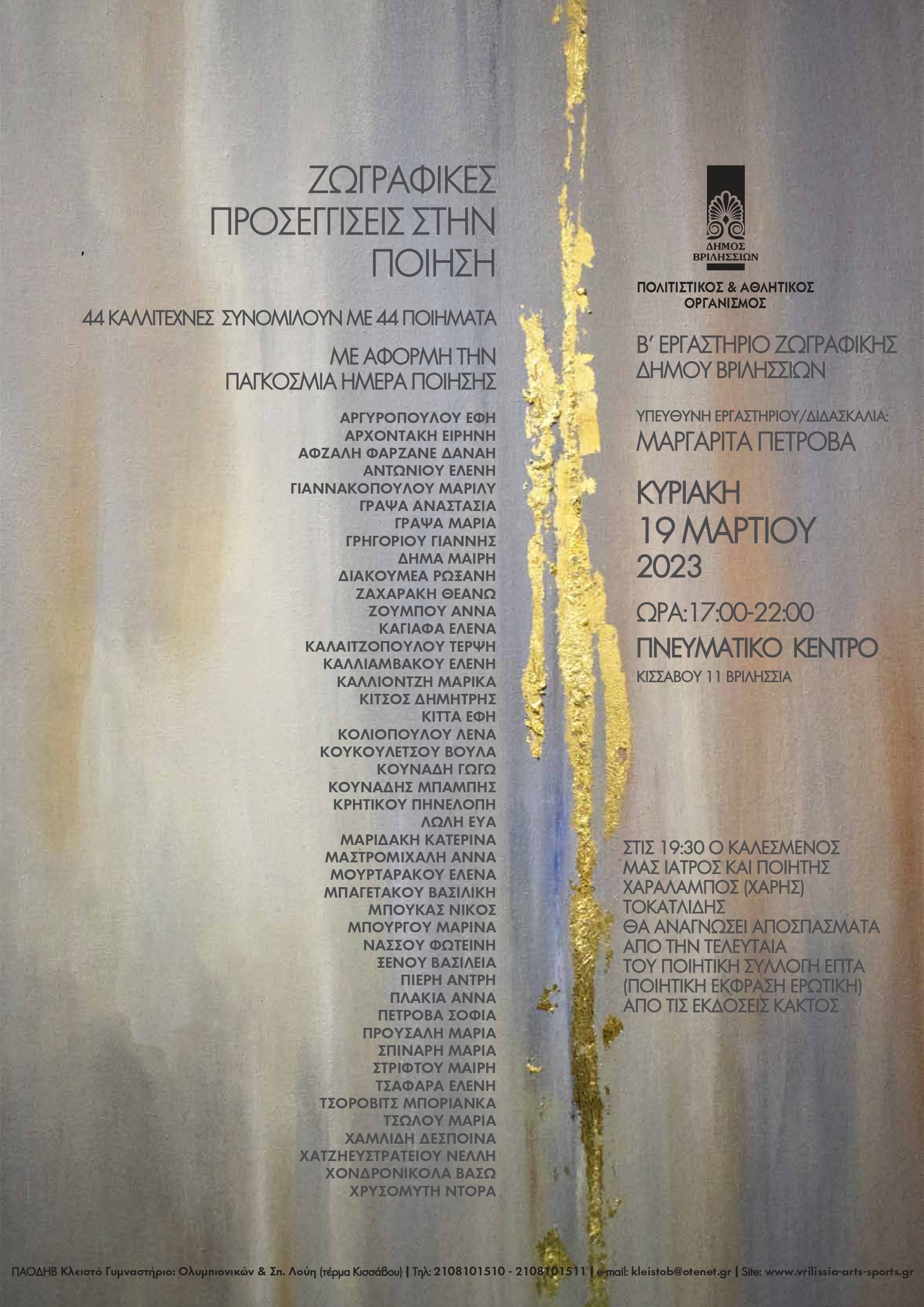 “ΖΩΓΡΑΦΙΚΕΣ ΠΡΟΣΕΓΓΙΣΕΙΣ ΣΤΗΝ ΠΟΙΗΣΗ” vrilissia_zab 13/03/2023 Δεν υπάρχουν Σχόλια Διαβάστε περισσότερα