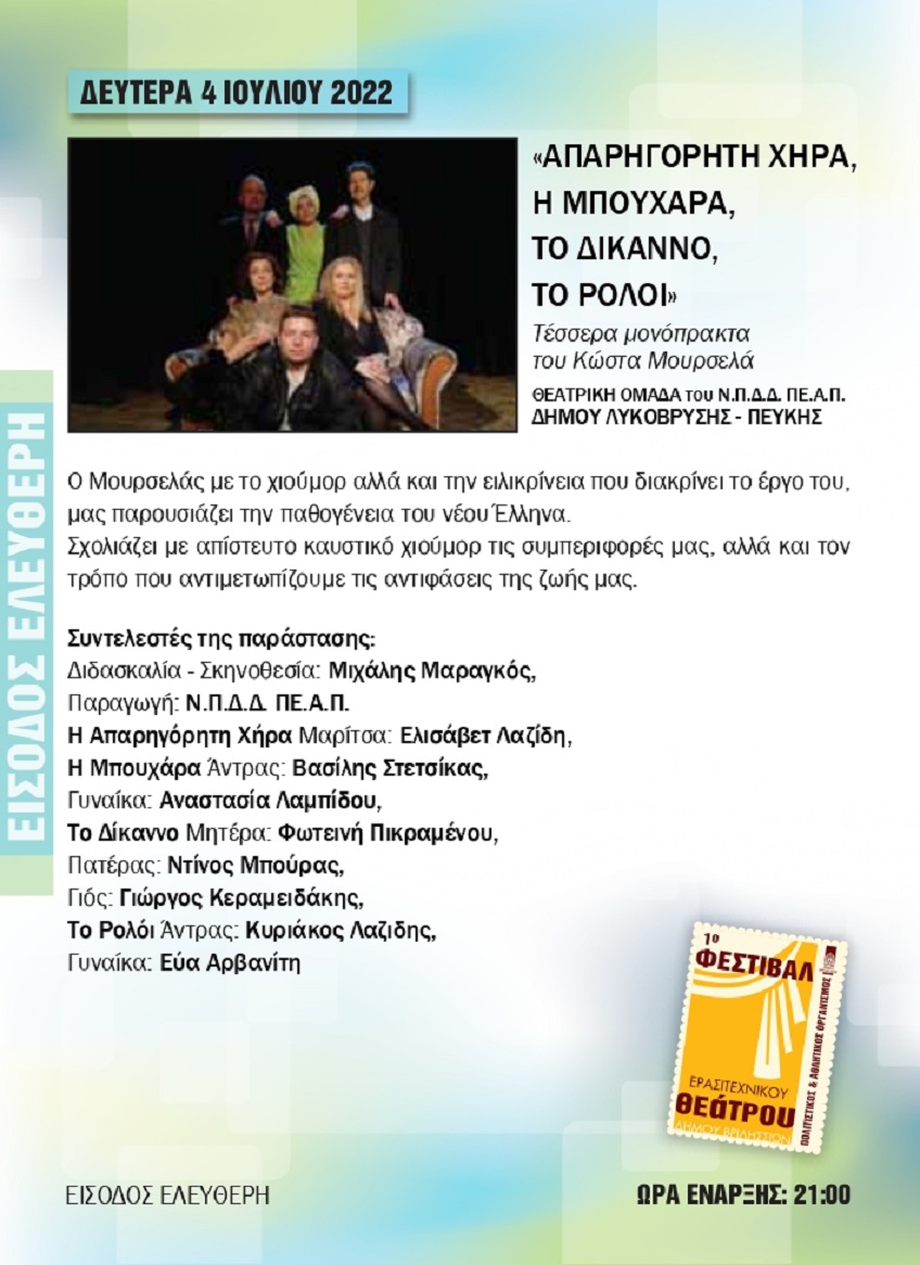 ΚΙΝΗΜΑΤΟΓΡΑΦΙΚΗ ΠΡΟΒΟΛΗ ΓΙΑ ΠΑΙΔΙΑ“ΟΝΕΙΡΟΜΠΕΛΑΔΕΣ” Τετάρτη 20 Ιουλίου 2022Πάρκο ΜΑΡΙΑ ΚΑΛΛΑΣ (πρώην Ναυτική Βάση)Λ. Πεντέλης & Αναπαύσεως ΒριλήσσιαΛίγα λόγια για την υπόθεση της παράστασης…Η 12χρονη Μίνα διαπιστώνει έκπληκτη πως μπορεί να…