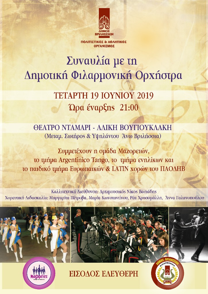 Συναυλία με τη Δημοτική Φιλαρμονική Ορχήστρα vrilissia_zab 12/06/2019 Δεν υπάρχουν Σχόλια Συναυλία με τη Δημοτική Φιλαρμονική Ορχήστρα Tετάρτη 19 Ιουνίου 2019 Διαβάστε περισσότερα