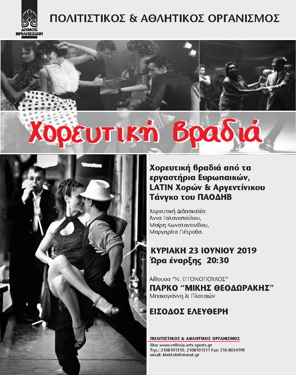 Χορευτική βραδιά vrilissia_zab 12/06/2019 Δεν υπάρχουν Σχόλια Χορευτική βραδιάΚυριακή 23 Ιουνίου 2019 Διαβάστε περισσότερα