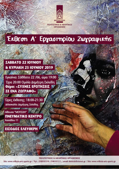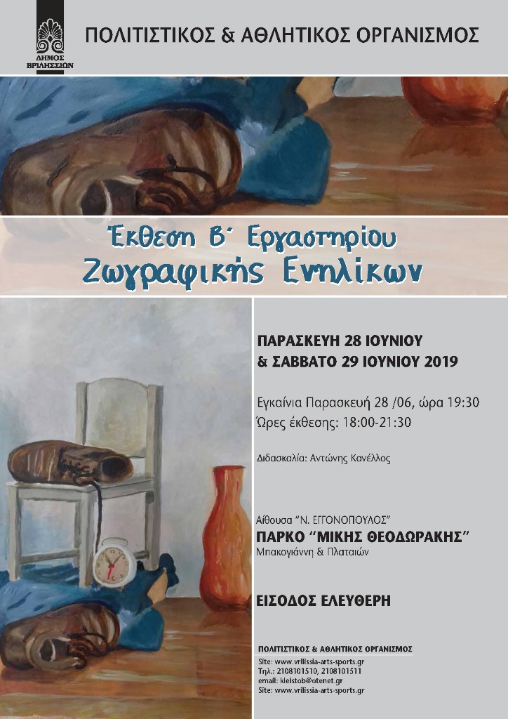 Έκθεση Α΄ Εργαστηρίου Ζωγραφικής Ενηλίκων vrilissia_zab 11/06/2019 Δεν υπάρχουν Σχόλια * Σάββατο 22 Ιουνίου & Κυριακή 23 Ιουνίου 2019Έκθεση Α΄ Εργαστηρίου Ζωγραφικής Ενηλίκων Διαβάστε περισσότερα