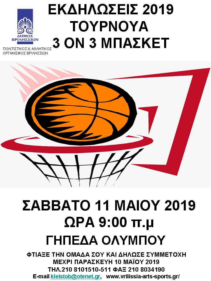 ΤΟΥΡΝΟΥΑ 3 ΟΝ 3 ΜΠΑΣΚΕΤ vrilissia_zab 06/05/2019 Δεν υπάρχουν Σχόλια Σάββατο 11 Μαϊου - 9:00 Γήπεδα Ολύμπου Διαβάστε περισσότερα