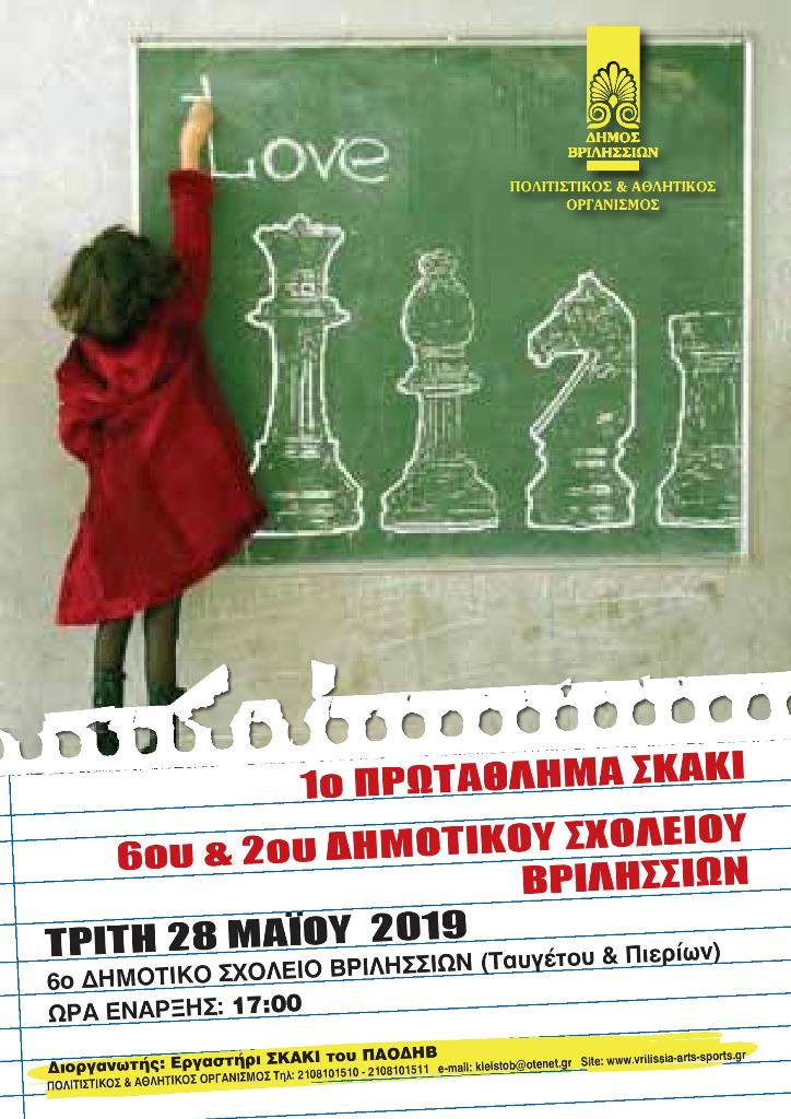 1o Πρωτάθλημα ΣΚΑΚΙ vrilissia_zab 09/05/2019 Δεν υπάρχουν Σχόλια 1o Πρωτάθλημα ΣΚΑΚΙ 2ου & 6ου Δημοτικού Σχολείου ΒριλησσίωνΤρίτη 28 Μαίου 2019 Διαβάστε περισσότερα
