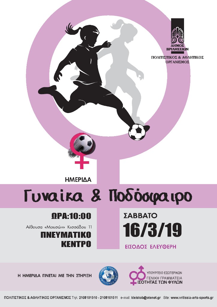 Ο Πολιτιστικός & Αθλητικός Οργανισμός του Δήμου Βριλησσίων θα διοργανώσει «Ημερίδα για τη γυναίκα και το Ποδόσφαιρο» στις 16 Μαρτίου 2019 στα Βριλήσσια. Η εκδήλωση θα συνδυαστεί με την Παγκόσμια…