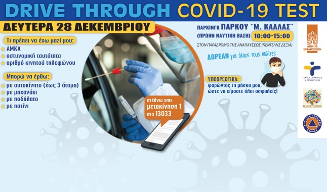 Ο Δήμος Βριλησσίων ενημερώνει ότι, τη Δευτέρα 28 Δεκεμβρίου 2020 και ώρα 10:00 – 15:00 θα πραγματοποιηθεί δωρεάν έλεγχος ταχείας ανίχνευσης κορωνοϊού (rapid covid-19 test), σε συνεργασία με τον Εθνικό Οργανισμό Δημόσιας…
