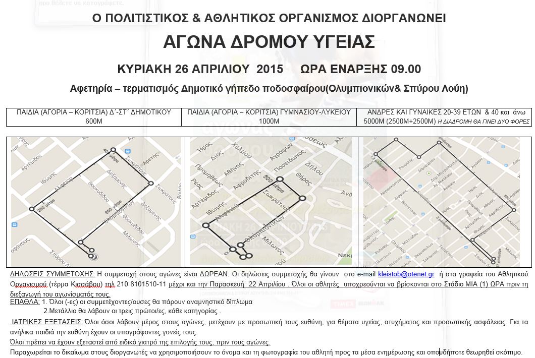 Με σύμμαχο τον καλό ανοιξιάτικο καιρό και τη μεγάλη συμμετοχή του κόσμου έγινε την Κυριακή 26 Απριλίου 2015 ο ΔΡΟΜΟΣ ΥΓΕΙΑΣ, που διοργάνωσε ο Πολιτιστικός & Αθλητικός Οργανισμός, με αφετηρία…
