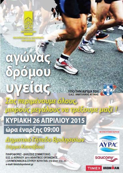 Αγώνας δρόμου υγείας 26/4/2015 31/03/2015 ΑΠΟΤΕΛΕΣΜΑΤΑ Αγώνας Δρόμου Υγείας Βριλησσίων Δημοτικού 26-4-2015 (600) Διαβάστε Περισσότερα