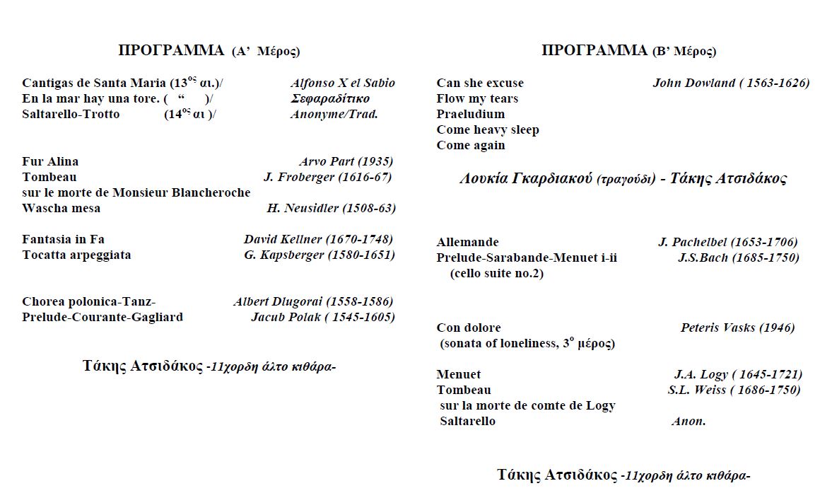 Πρόγραμμα Ατσιδάκος 02/04/2015 Στις 4/4/2015 θα πραγματοποιήθει η εκδήλωση "ΑΤΣΙΔΑΚΟΣ" 11χορδη άλτο κιθάρα. Διαβάστε Περισσότερα