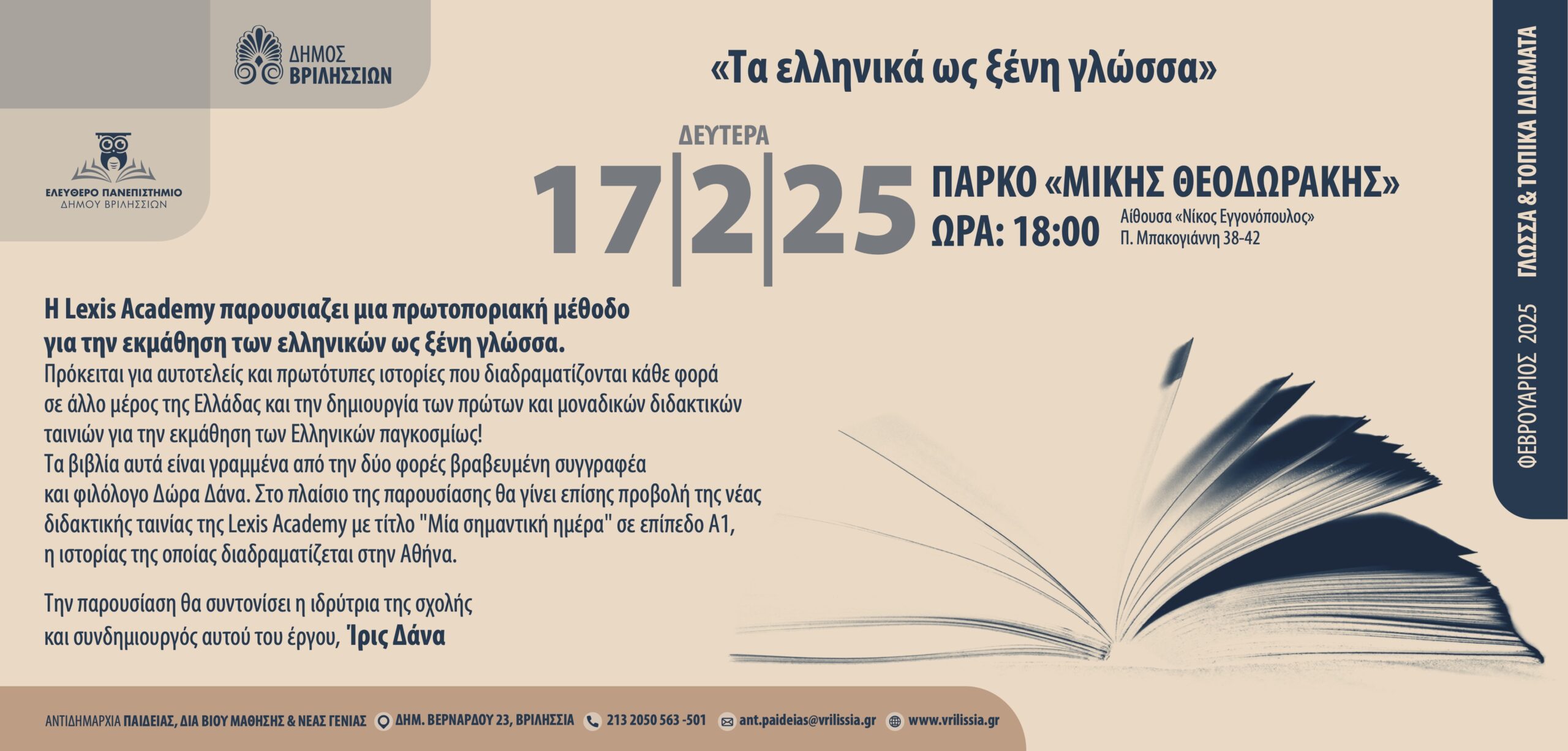 Εστιάζοντας σε θέματα που αφορούν τη νέα γενιά της πόλης μας, σε συνεργασία με τον Ομότιμο καθηγητή του Πανεπιστημίου Αθηνών κ. Μιχάλη Κασσωτάκη ο Δήμος Βριλησσίων διοργανώνει κύκλο σεμιναρίων Επαγγελματικού…