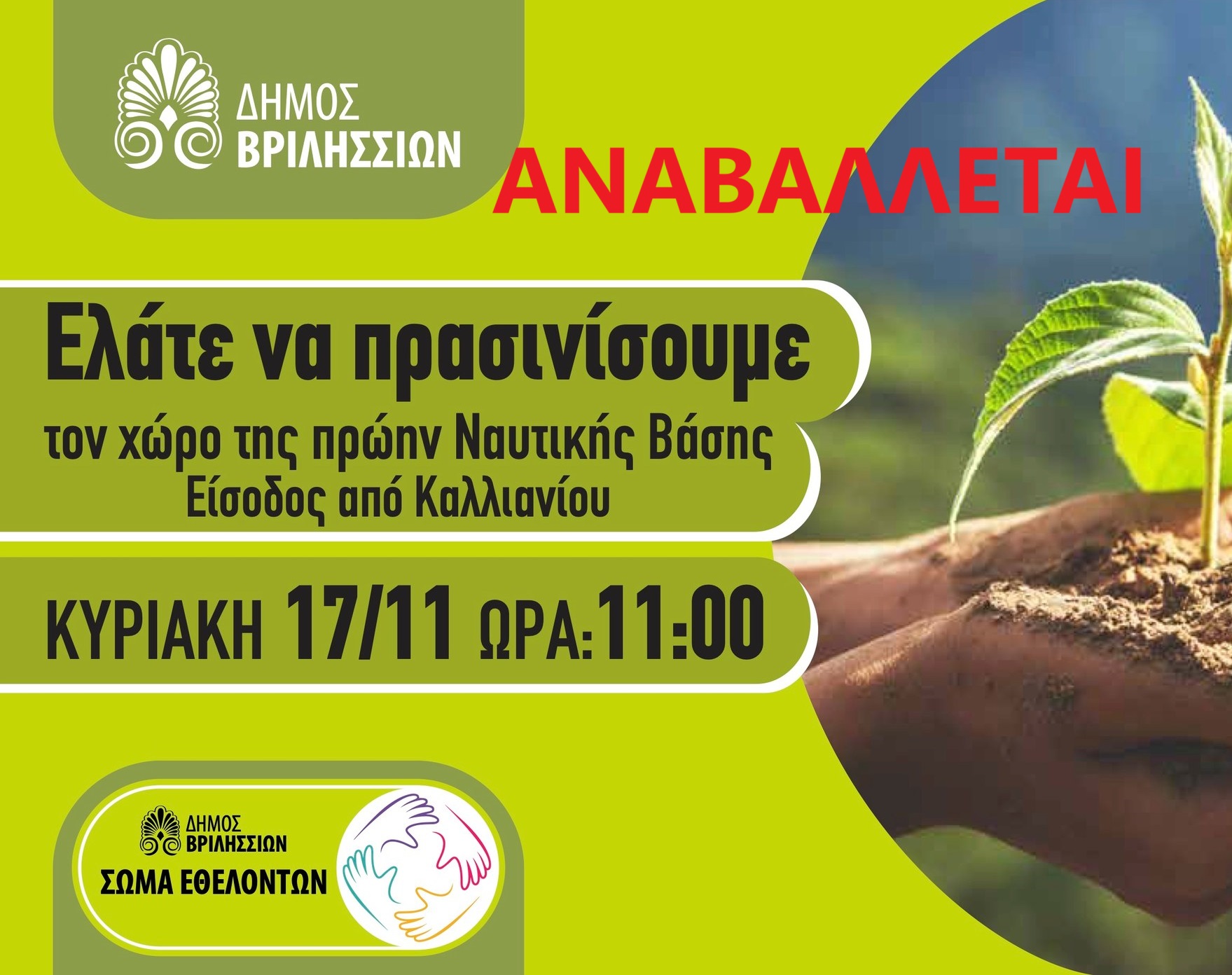 Tην Κυριακή 24/11 «πρασινίζουμε» τον χώρο της πρ. Ναυτικής Βάσης