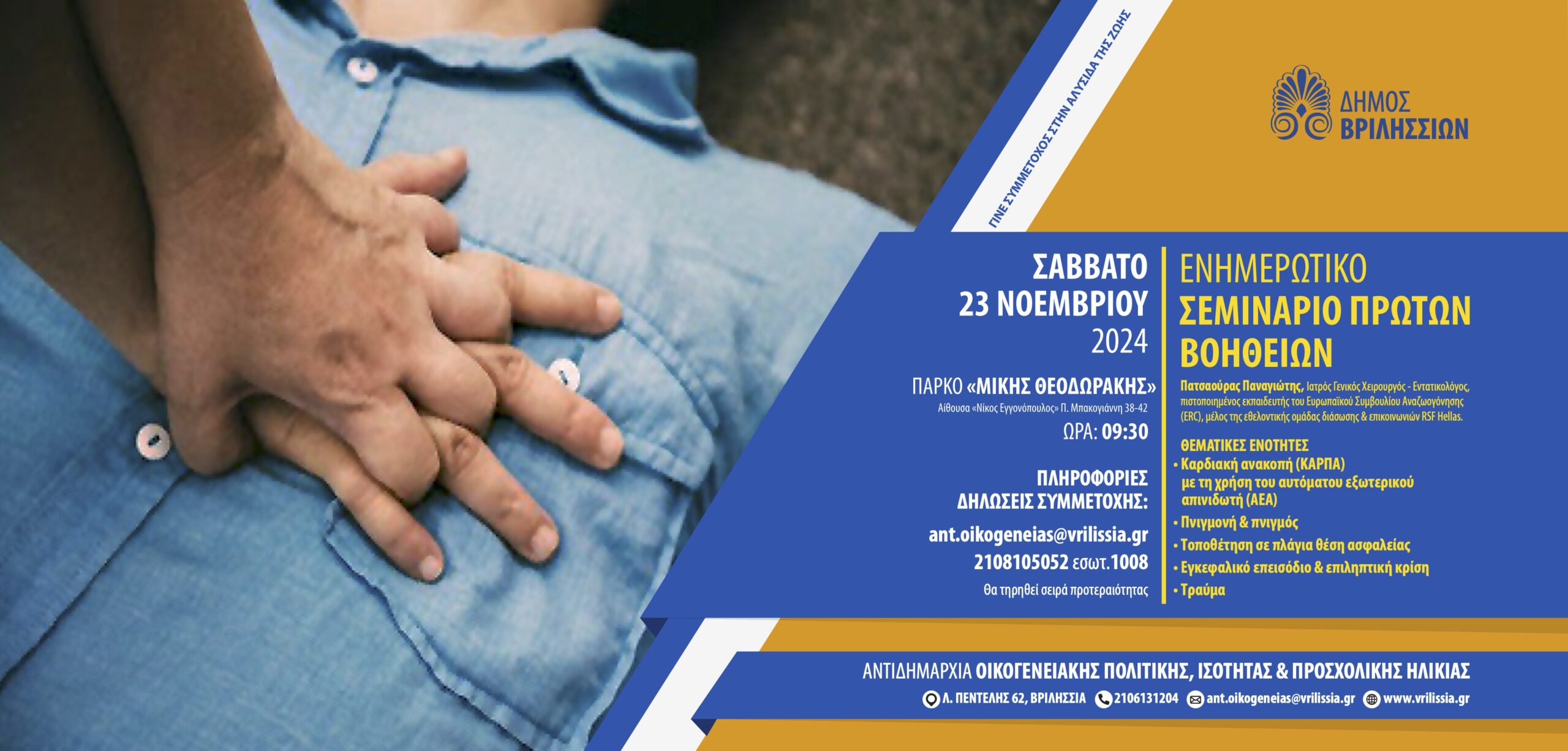 Την Κυριακή 24/11/2024 ο Δήμος Βριλησσίων και το Σώμα Εθελοντών καλούν όλους τους συμπολίτες μας να λάβουν μέρος στη φύτευση πάνω από 400 νέων δέντρων και θάμνων στον χώρο της…